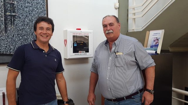En el marco del Proyecto Ciudad Neuro y Cardioprotegida, donde nuestra Filial se encuentra trabajando fuertemente, se instaló un desfibrilador entre los establecimientos de AMFFA y el CFLP.