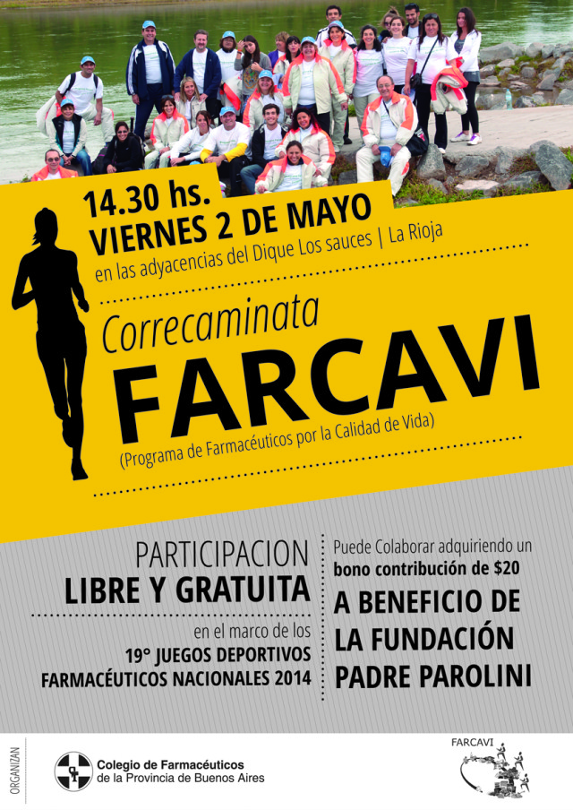 Este año será la V CORRECAMINATA FARCAVI en el marco de los Juegos Farmacéuticos Nacionales que se realizarán en La Rioja.