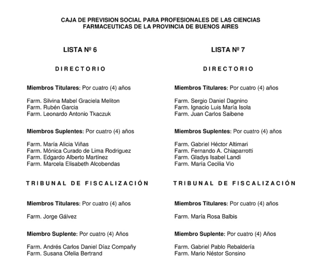 Aquí les ofrecemos una imagen con las dos listas para que puedan evaluar los colegas que integran cada propuesta y elegir en beneficio de todos.