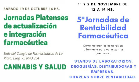 El próximo sábado 19 de octubre, y el 1 y 2 de noviembre se desarrollarán dos importantes y ya tradicionales eventos en el CFLP. El primero de ellos se trata de las Jornadas Platenses de Actualización e Integración Farmacéutica, mientras que el otro será las Jornadas de Rentabilidad Farmacéutica.