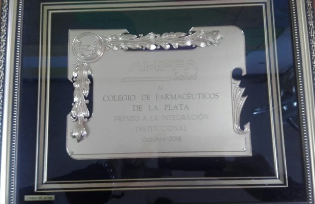 En el marco de las 34º Jornadas Nacionales de Seguridad Social Farmacéutica y el 32º Encuentro Educacional de Cooperativas Farmacéuticas –desarrollados los días 12, 13 y 14 de octubre en la ciudad de Mar del Plata- nuestra Filial fue reconocida con el “Premio a la Integración Institucional”, otorgado por AMFFA.