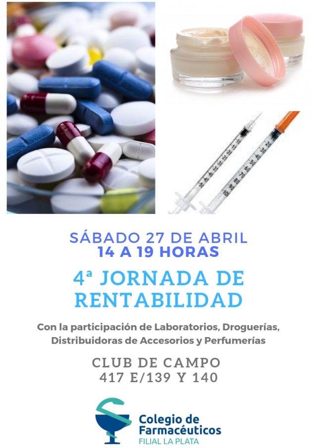 Debido a las exitosas ediciones anteriores, este año una vez más desde la Filial se llevará adelante una Jornada de Rentabilidad para que todos los Farmacéuticos de La Plata puedan tener un contacto directo con diferentes proveedores de insumos para las Farmacias.