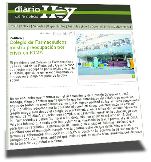 El presidente del Colegio de Farmacéuticos de la ciudad de La Plata, Julio César Alonso, se mostró preocupado por la crisis existente en IOMA, que viene generando importantes atrasos en el pago por parte de la obra social.