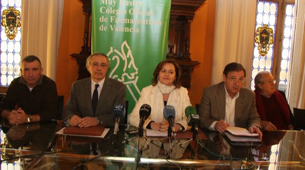 José Antonio Puchades (Sindicato Libre de Farmacéuticos), Vicente Payá (empresarial de oficinas de farmacia Farval), Mª Teresa Guardiola y Juan Salmerón (ambos de COF de Valencia). (Foto de CF)