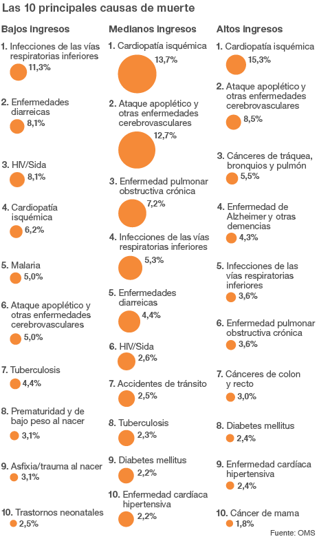 He aquí las 10 principales causas de muerte según el estudio publicado por la OMS en 2011.