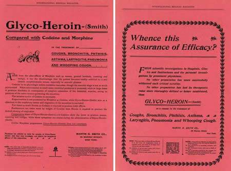 Entre 1890 y 1910, la heroína era divulgada como un sustituto no adictivo de la morfina y un remedio contra la tos para nińos.